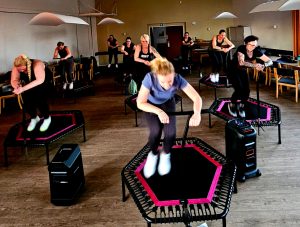 Stell dir vor, du betrittst einen Raum voller Energie, Lachen und guter Laune. Eine bunte Gruppe von sportlichen Menschen, die auf ihren Trampolinen stehen. Das